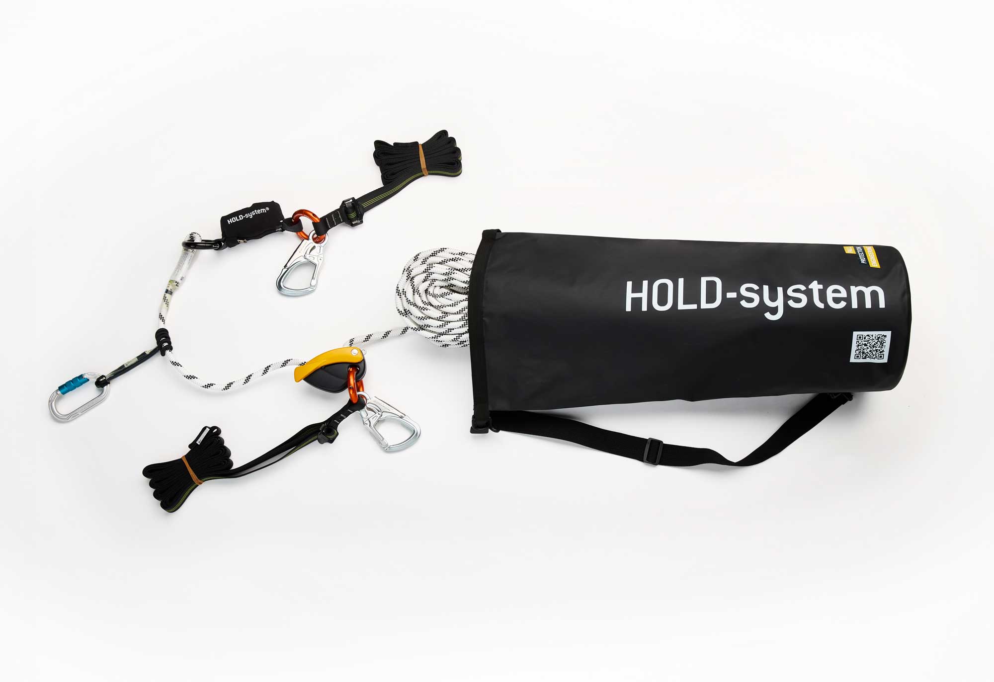 Das HOLD-system bietet höchste Sicherheit bei Arbeiten an Gebäuden, auf Dächern, im Holzbau, der Instandhaltung oder Eventtechnik. Die zertifizierte Lifeline ist in verschiedenen Seillängen von 20 - 80m erhältlich. Das HOLD-system kann mit Höhensicherungsgeräten und Verbindungsmitteln kombiniert werden. Die Lifeline kann von zwei Personen gleichzeitig benutzt werden. Das HOLD-system ist rasch montiert und kann an Gebäudestrukturen oder Einzelanschlagpunkten befestigt werden.